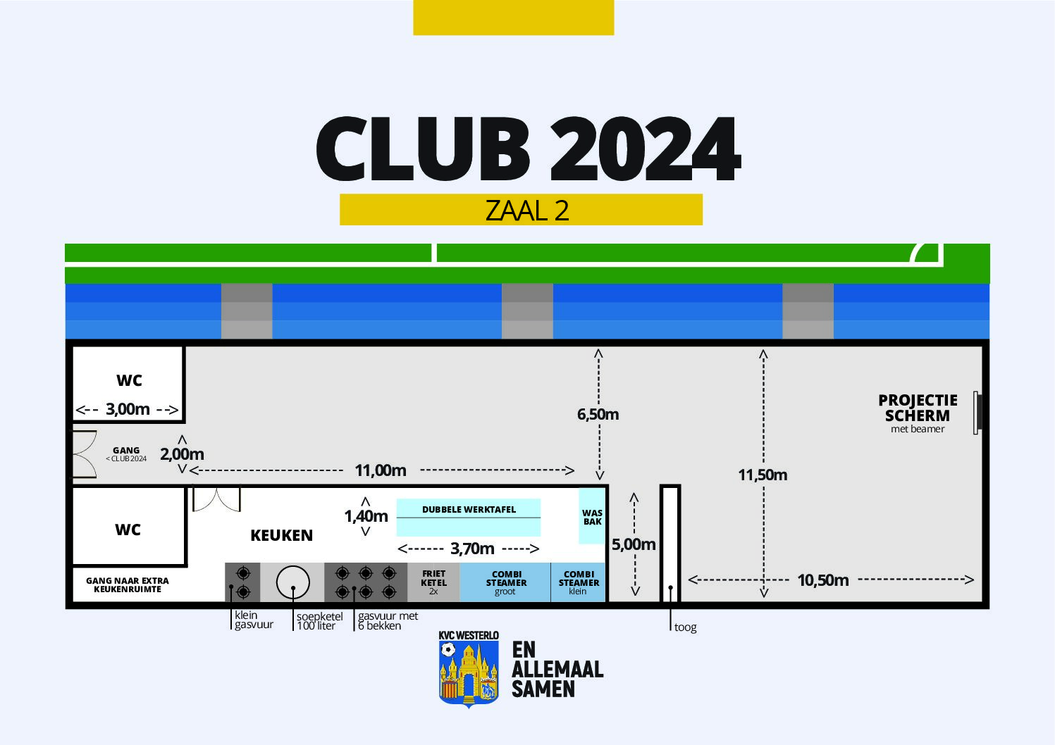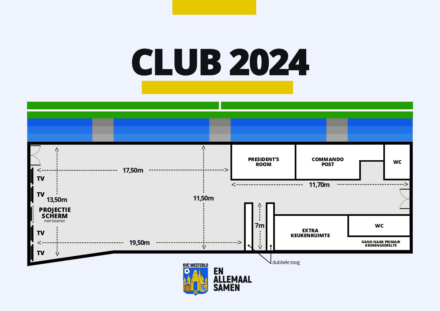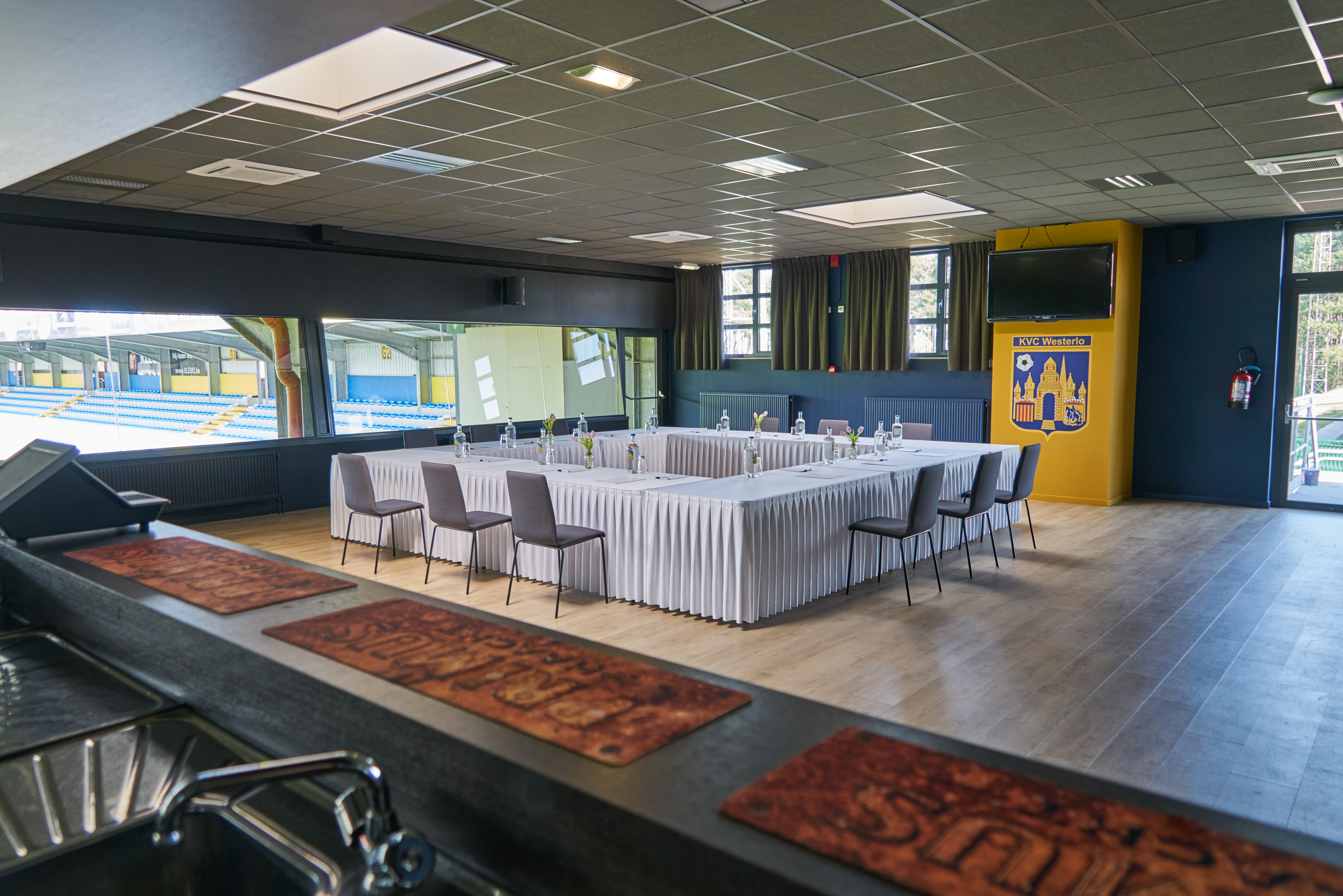 Met een prachtig uitzicht op het wedstrijdveld biedt onze modern ingerichte ruimte van 400 vierkante meter plaats aan maximaal 400 personen. Deze locatie is perfect voor uiteenlopende zakelijke evenementen, van bedrijfsfeesten en vergaderingen tot trainingen en presentaties. Dankzij de veelzijdige faciliteiten en de stijlvolle inrichting kunnen uw gasten genieten in een comfortabele en professionele omgeving.